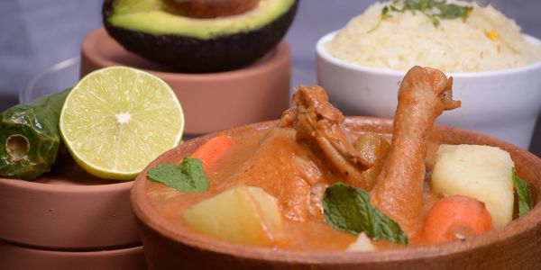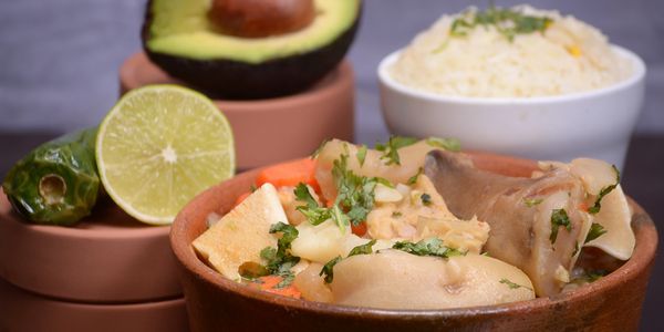 Pumplin seed broth, carrots, chayote, potatoes, mint, corn